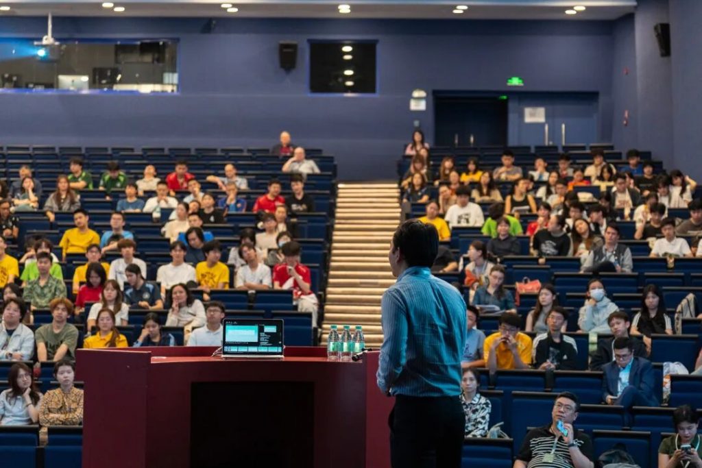 After confirming that none of us was sleeping due to boredom, Dr. Guan proposed an innovative topic of two types of people: seekers of the answers and the explorers of the unknown, at the moment when he starts to show the difference between this lecture and others – the interactivity. Beyond the expectations of a “normal” lecture, Dr. Guan jumped off the stage and walked into the audience with another microphone, prepared to receive new ideas at any moment. His patience drove him to guide students to the answers when they struggled with some of the aspects, reaching an agreement to be shown on the slides that made his ideas more effective and closer to our lives.