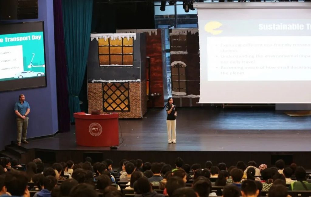 GC Division Deputy Chair Yvonne led G2 students in revisiting the concept of sustainable transportation during the grade assembly. In this sharing session, we focused on three interrelated themes: the actual differences in carbon emissions among various modes of transport, the hidden impacts of “habitual car use” in short-distance travel, and the connections between transportation choices, physical health, and the quality of urban space.