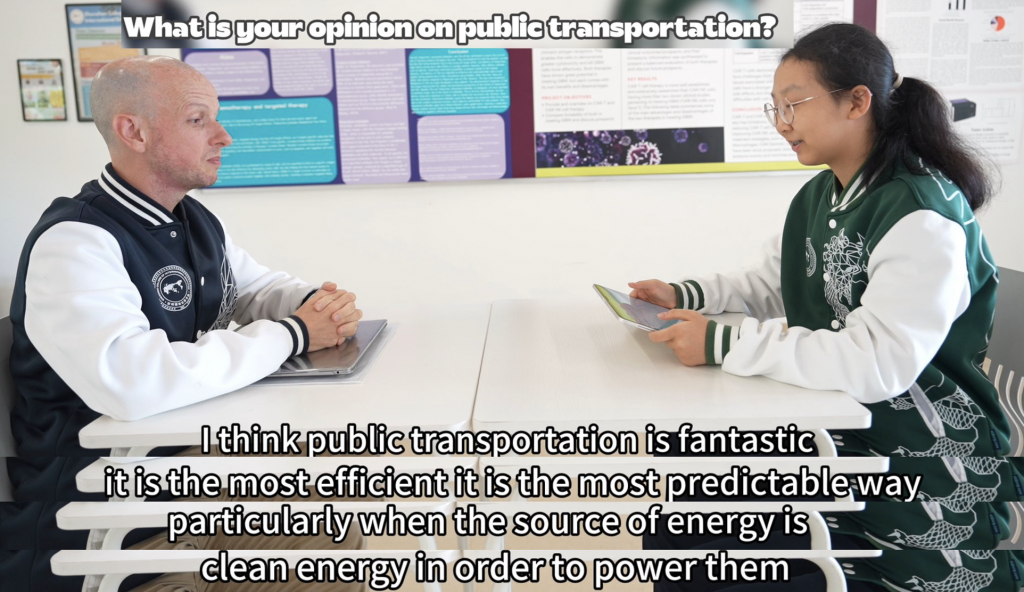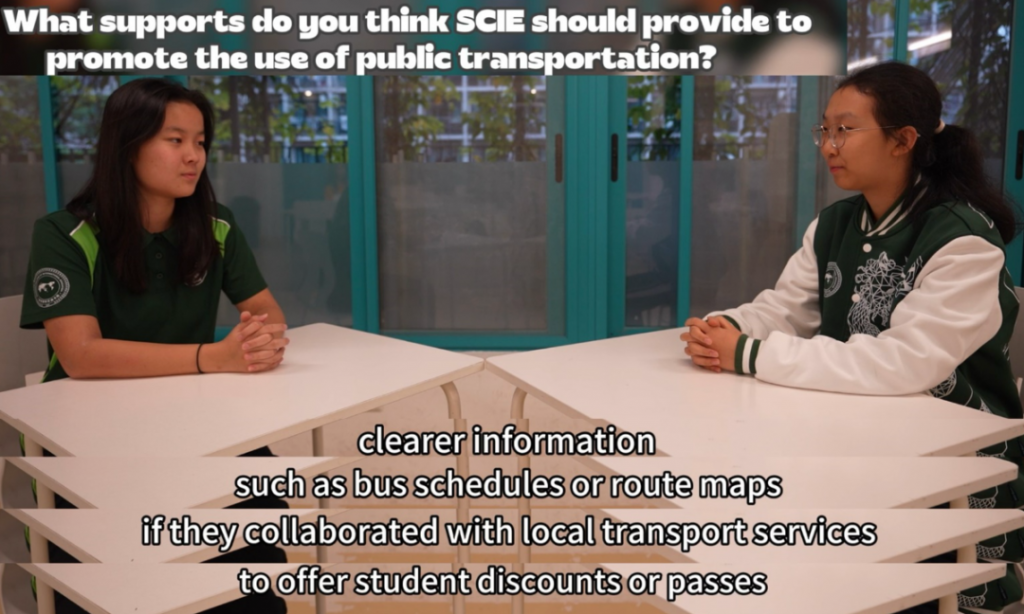 Yvonne: As the main organizer of this event, I would like to say: change comes from actions that have been thoughtfully considered. This Sustainable Transportation Day encouraged more people to think, express, and make choices, and to participate in a learning experience about responsibility, communication, and real-world implementation. I would like to thank Ms. Angelien for her support throughout the entire event and for providing invaluable advice and thank our English teacher Mr. Anthony and Physics teacher Dr. Neto for participating in our interviews and sharing diverse perspectives and unique insights on transportation choices.